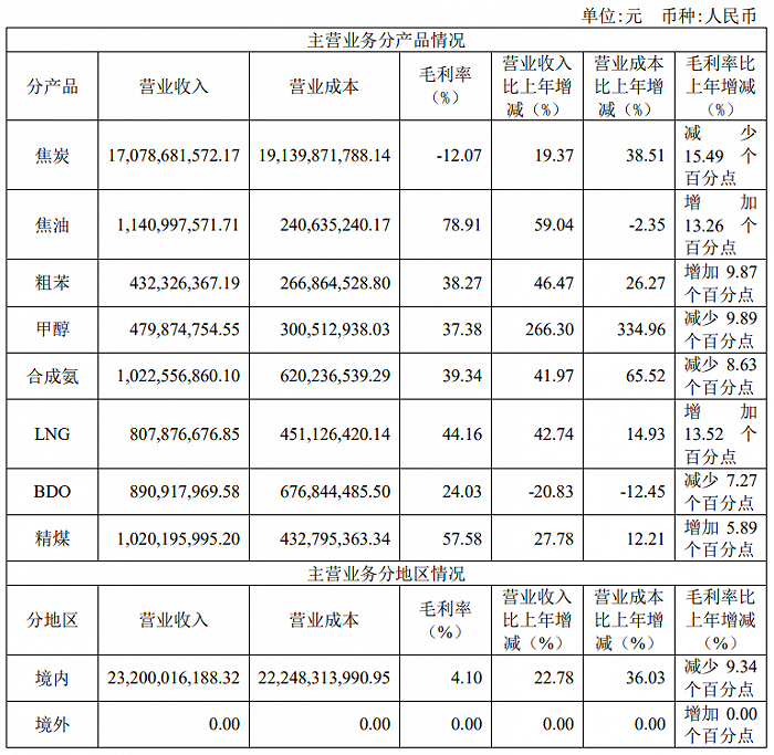 财报显示,2022年陕西黑猫焦炭业务毛利率为-12.07%,比上年减少15.49个百分点。据测算,焦炭综合售价为2602元/吨,同比增长8.17%;综合销售成本为2916元/吨,同比增长25.53%。