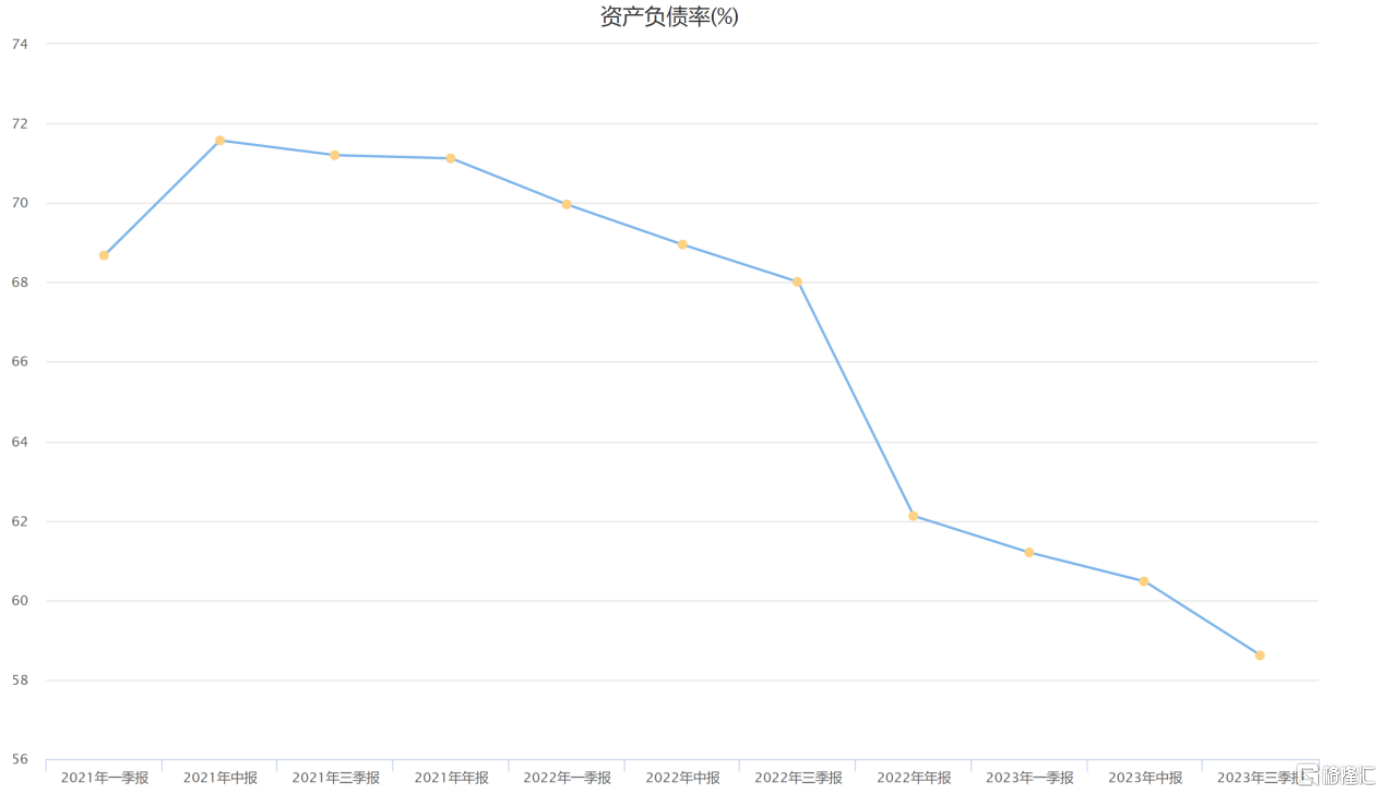 得益于优秀的资本运作能力,节能风电在规模持续扩张的同时,保证了资产负债率的持续下降,从2021年中期的71.2%连续降低到了2023年Q3的58.61%。