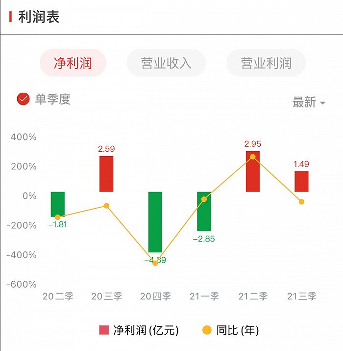 春秋航空2020年二季度至2021年三季度利润对比
