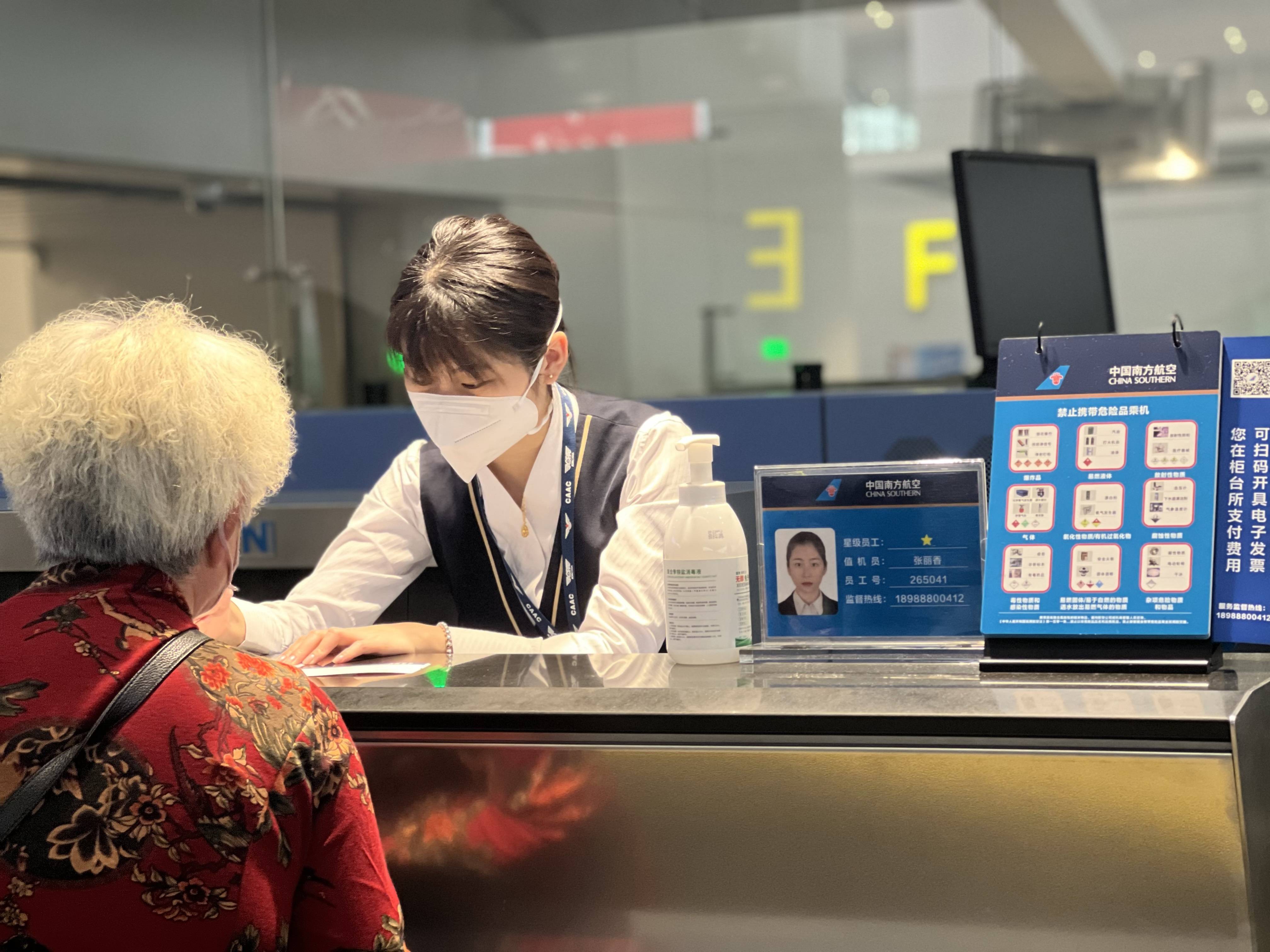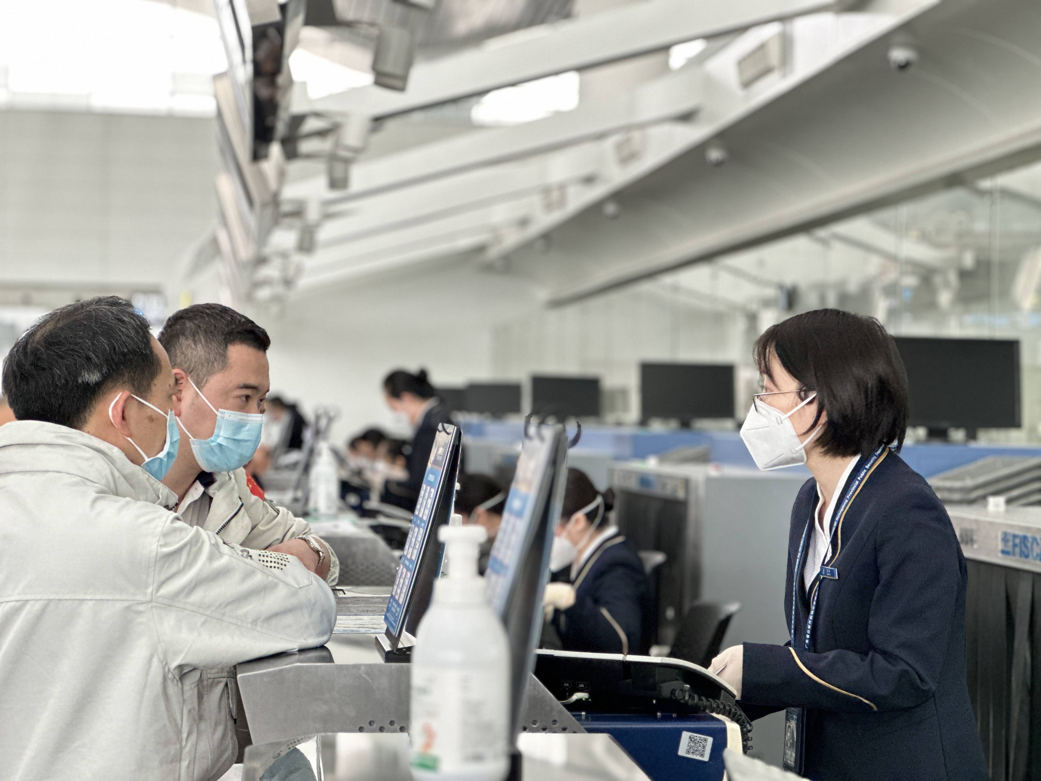 旅客在柜台办理登机手续。??本文图片受访者供图