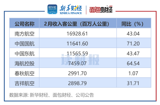 收入客公里:南航居首同比普升