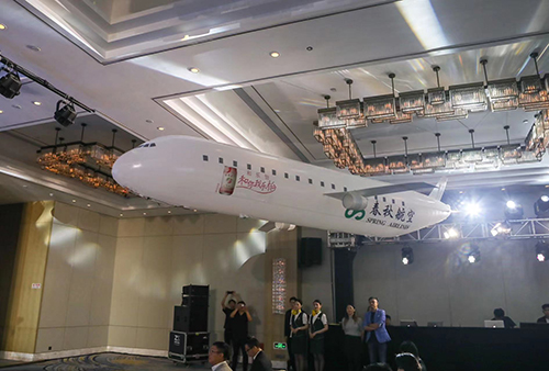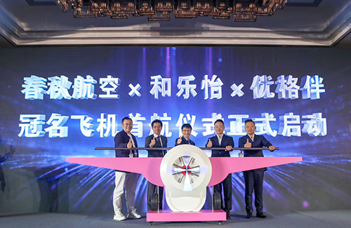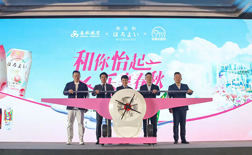 春秋航空、宾三得利公司、上海糖业烟酒集团有限公司,共同推出“和乐怡”冠名飞机,希望这款风靡年轻人的饮料,伴随春秋航空的航线网络,飞往亚洲各地,赢得更多人的喜爱。