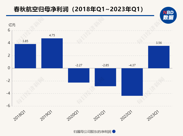 财务数据显示,受疫情影响,春秋航空2022年营收83.69亿元,同比减少22.92%,净亏损30.36亿元,上年同期净利润为3911万元。2023年第一季度,公司扭亏为盈,报告期内营收38.63亿元,同比增长63.65%,归母净利润3.56亿元,去年同期亏损4.37亿元。