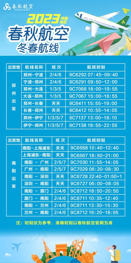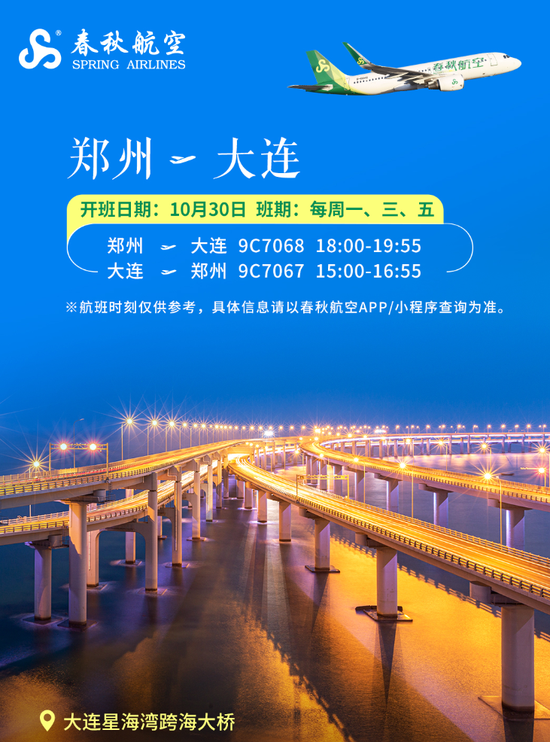 为迎接冬春换季,春秋航空根据季节和市场需求变化,优化调整市场结构和航线网络布局,满足郑州市民出行需求,并对热门航线推出特价: