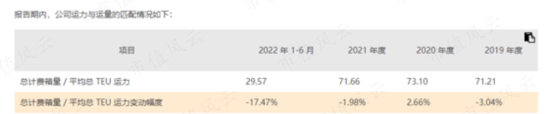 以2019年底为基准,2022年半年末公司自有运力(载重吨)和自有集装箱(TEU)分别增长了48.3%和43.2%。