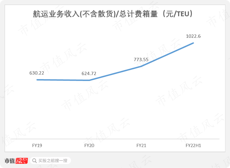 平均运价也从630.2元/TEU增长至1022.6元/TEU。