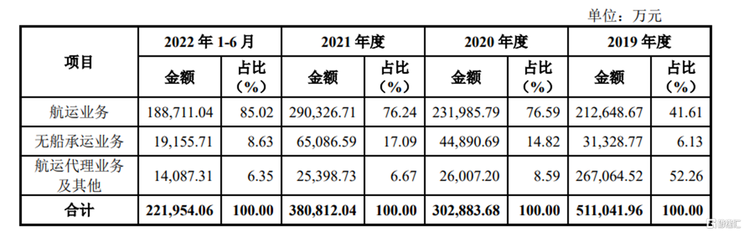 报告期内,宁波远洋的主营业务主要包括航运业务收入、干散货无船承运收入和航运代理业务收入。报告期各期,主营业务收入占营业收入的比重均在97%以上。公司其他业务收入主要为船舶租赁收入、房租收入和劳务费收入等,占营业收入比重较小,对业绩影响很小。