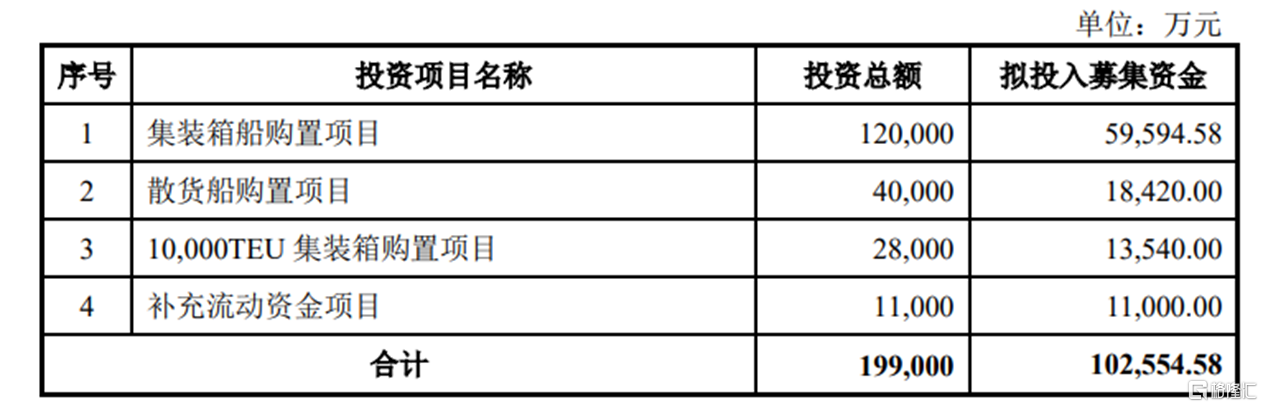 本次拟募集的资金用于集装箱船购置项目、散货船购置项目、10,000TEU集装箱购置项目以及补充流动资金项目。