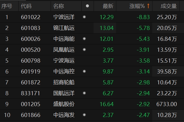 航运板块下挫 宁波远洋跌近9%