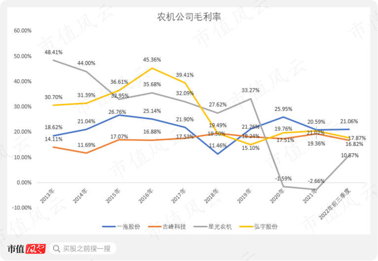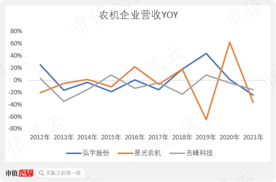 同业其他可比公司日子也不好过,弘宇股份(002890.SZ)、星光农机(603789.SH)、吉峰科技(30022.SZ)在这段时间营收增长率基本为负,2018年后才各自有不同程度的起色。
