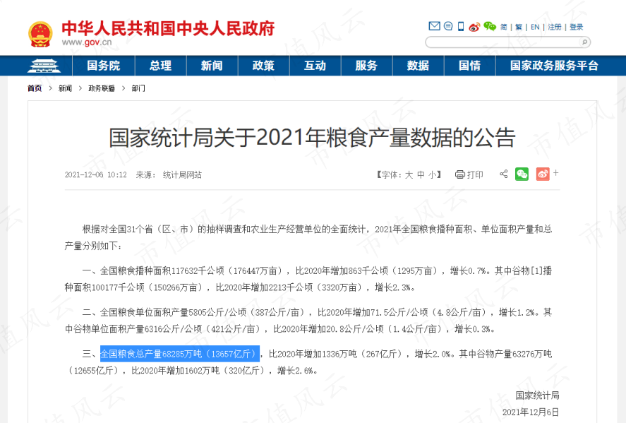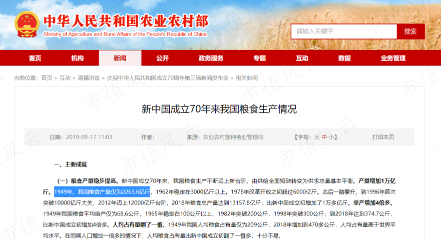 新中国成立70年以来,我国粮食生产不断迈上新的台阶,产量从1949年的2263.6亿斤到2021年的13657亿斤,翻了超6倍!