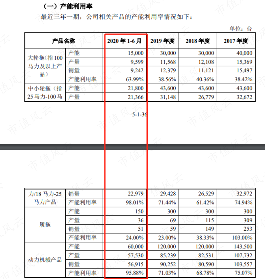 在2020年上半年,一拖的中小轮拖产能利用率达到了逆天的98.01%,动力机械产品亦不遑多让,产能利用率高达95.88%。二者较2019年平均提高了20个百分点。