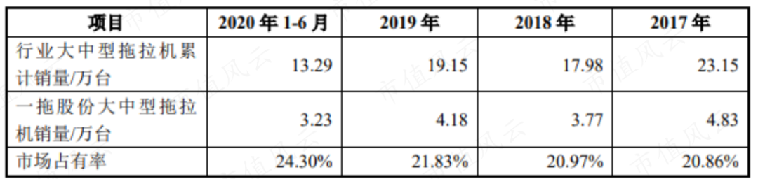 此消彼长之下,一拖市占率也顺势提高,2020年上半年达到24.3%,“拖拉机一哥”江湖地位更加稳固。