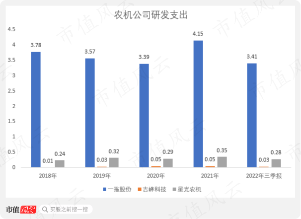 由于一拖体量大,若论研发支出,一拖还是有明显优势,平均每年支出3.6亿元。