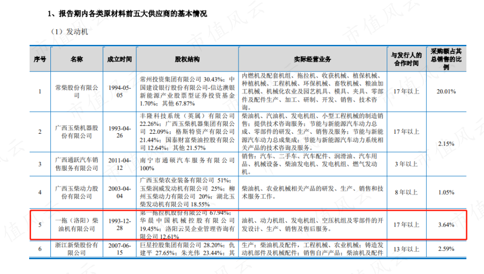 在沃得农机招股书中,一拖(洛阳)柴油机有限公司(下称一拖柴油机)赫然出现在其主要供应商的行列内。一拖柴油机为一拖的控股子公司。