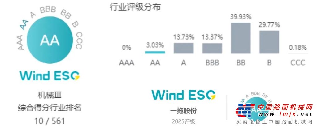 7月3日,国内权威ESG评级机构万得(Wind)更新一拖股份ESG评级,公司评级由A级上调至AA级。根据数据显示,一拖股份所在行业中达到AA级及以上的企业数量仅占3.03%。这一成绩不仅是对一拖股份ESG工作的高度认可,更标志着公司可持续发展能力的潜力与价值。
