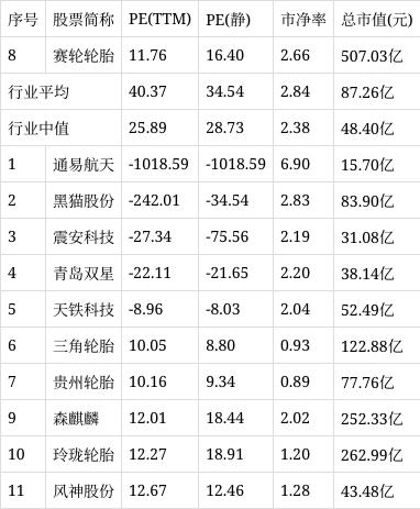 从行业市盈率排名来看,公司所处的橡胶制品行业市盈率平均40.37倍,行业中值25.89倍,赛轮轮胎排名第8位。