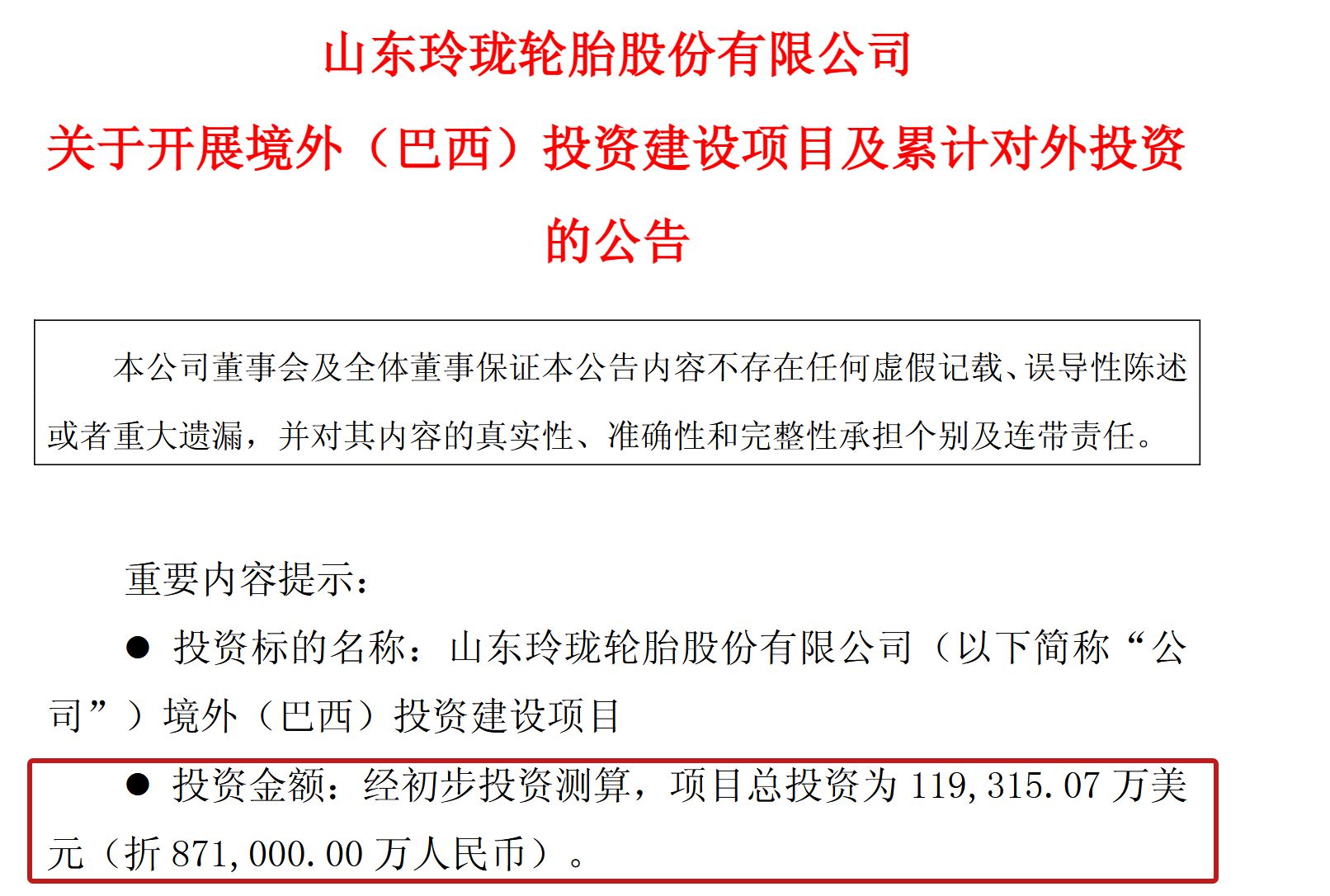 图片来源:玲珑轮胎公告