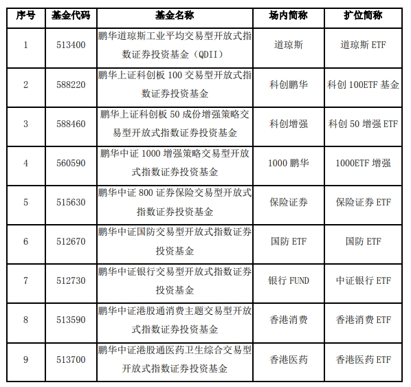 据上交所消息,3月18日交易所基金公告显示,鹏华基金决定自2024年3月18日起增加信达证券为下述适用基金的申购赎回代理券商。适用基金: