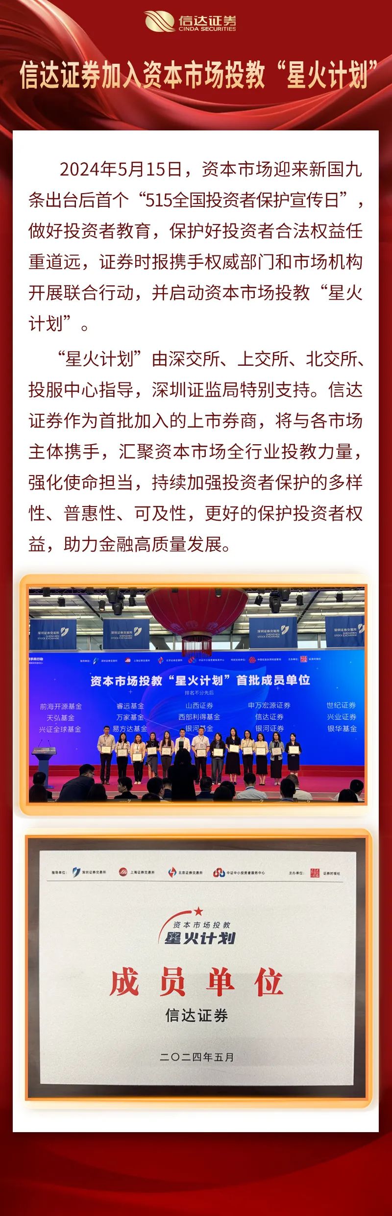 信达证券加入资本市场投教“星火计划”