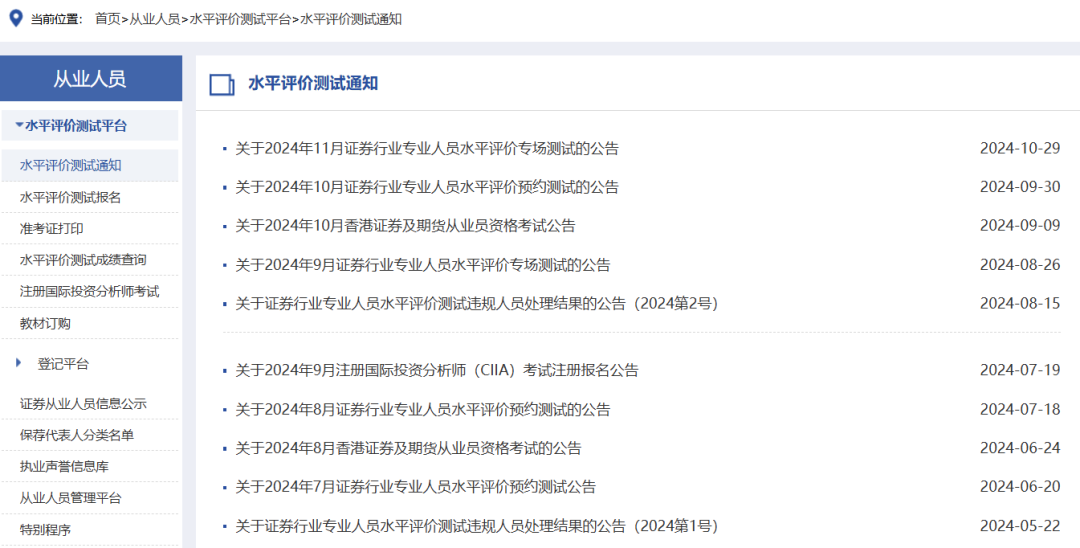 按照2024年测试计划,中证协拟于2024年11月30日举办证券行业专业人员水平评价专场测试。本次测试面向券商机构拟任董监高及从业人员,仅限“内部报名”。