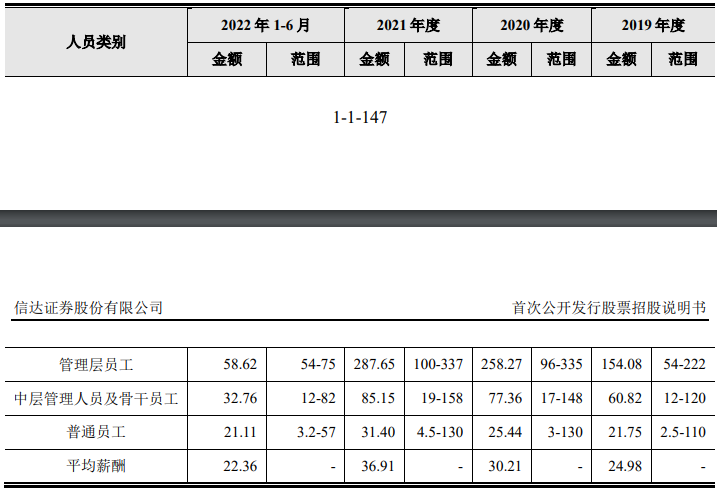 招股书显示,信达证券管理层人员的人均薪酬,在2020年超过普通员工的10倍;2021年也达到9.16倍。