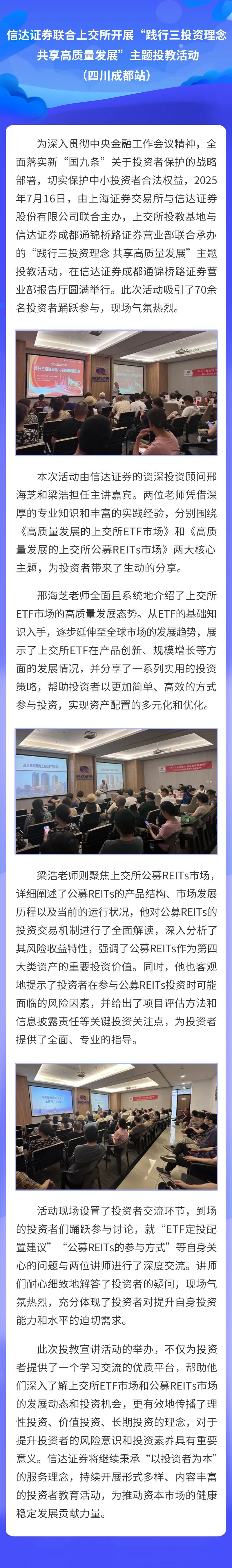 信达证券联合上交所开展“践行三投资理念 共享高质量发展”主题投教活动--四川成都站