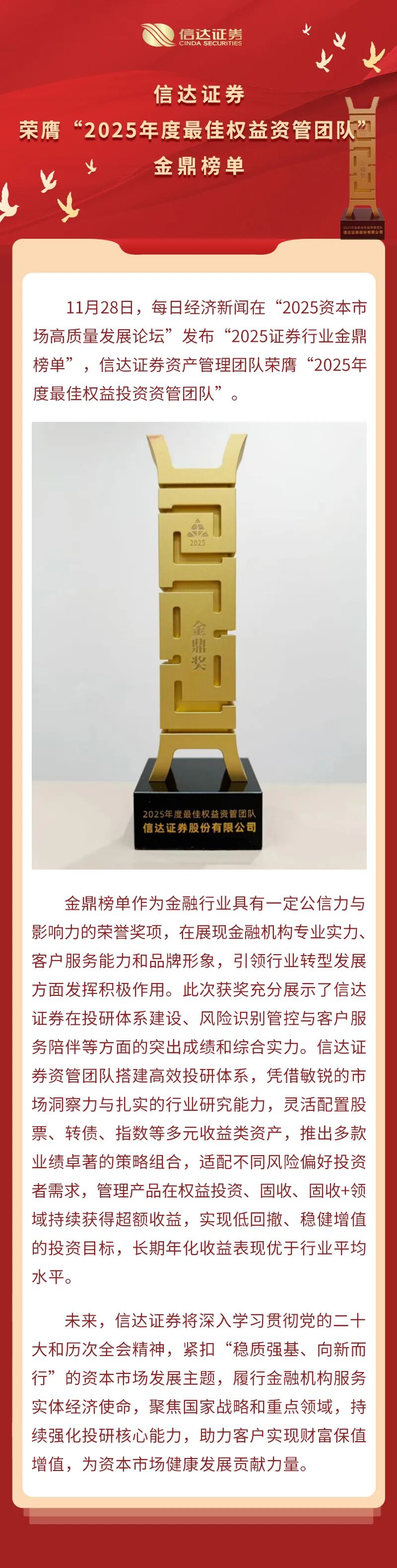 信达证券荣膺“2025年度最佳权益资管团队”金鼎榜单