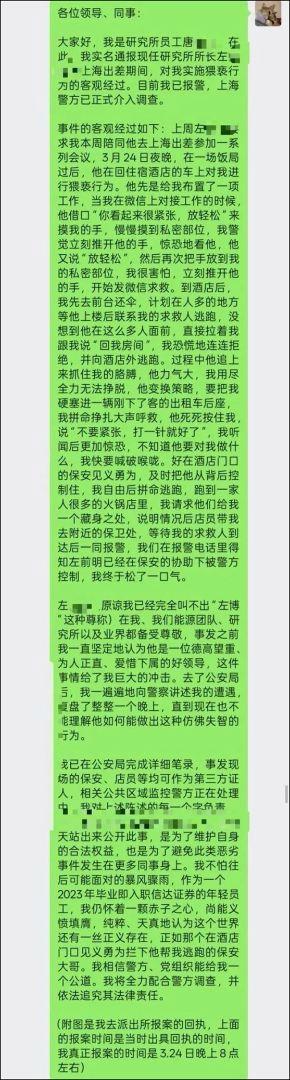 而此次左前明猥亵下属事件,更是将合规管理的漏洞从业务层面延伸至职场伦理层面。作为研究所所长,左前明利用出差履职的便利侵犯下属,既暴露了公司对高管权力缺乏有效监督,也反映出员工权益保护机制的缺失,与其中央汇金系券商的身份形成鲜明反差。