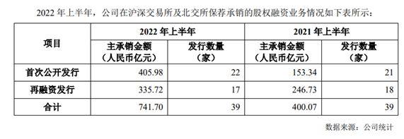 其中,IPO主承销家数22家,主承销金额405.98亿元,均位居行业第2名。