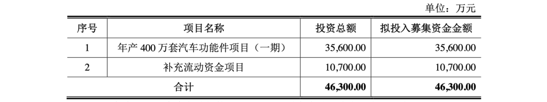 安徽芜湖福赛科技股份有限公司(以下简称“福赛科技”)公司是一家专注于汽车内饰件研发、生产和销售的高新技术企业,是省专精特新冠军企业,主要产品包括内饰功能件和装饰件。此次福赛科技拟募集46,300.00万元用于年产400万套汽车功能件项目(一期)和补充流动资金项目。