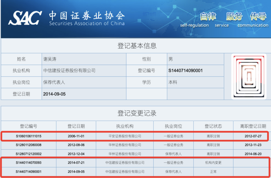 报道显示“2012年6月平安证券保代李鹏、谢吴涛”中的谢吴涛为原平安证券保荐人现为福赛科技项目经办人谢吴涛。