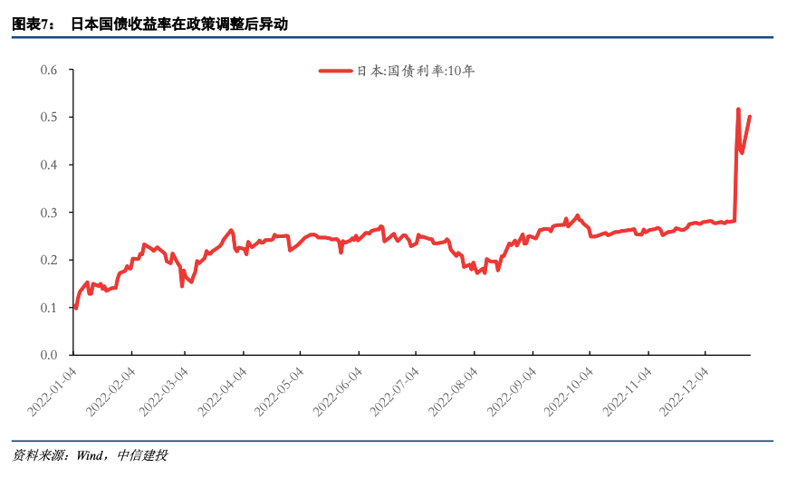 海外层面,FOMC后海外各种风险担忧再起。一方面,美联储12月加息步伐放缓至50bp,但同时释放“鹰派信号”,鲍威尔在14日的讲话中,重申了美联储抗击通胀的决心,进一步释放“鹰派”信号,强调加息还有“很长一段路要走”,并较为明确地表示2023年可能不会降息。近期美国10年期国债收益率仍然维持上行趋势,FOMC预测美联储加息区间上升,美股持续下跌。另一方面,日本央行政策调整引发全球市场波动。日本央行20日宣布将收益率目标从±0.25%上调至±0.5%左右,但同时将1-3月日本国债购买规模提高至9万亿日元/月,政策调整明显早于市场预期。这一动作预示着日本央行货币政策正常化的大趋势,这可能在未来带来连锁反应,并影响全球市场,自从调整政策发布以来,日本10年国债利率持续突破高位,日元升值趋势延续,证明投资者目前对该政策调整的担忧并没有缓解,未来或许仍有可能进一步调整浮动区间。