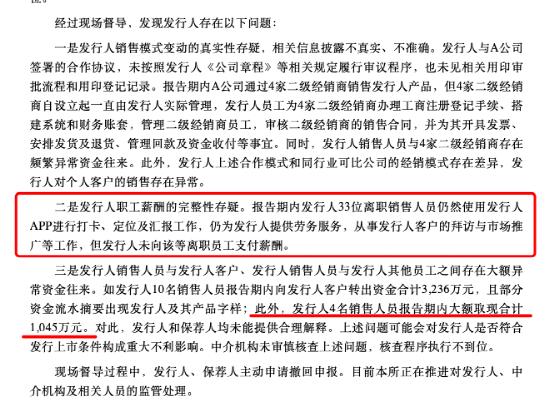 这其中还出现了一些非常匪夷所思的问题:比如生泰尔有33位离职销售人员,仍然使用公司的APP打卡、定位及汇报工作,但生泰尔却没有给他们付工资。