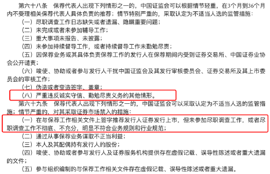 对保荐机构及其有关董监高,也可给予谴责等监管措施。情节严重涉嫌犯罪的,还将依法移送司法机关,追究其刑事责任。