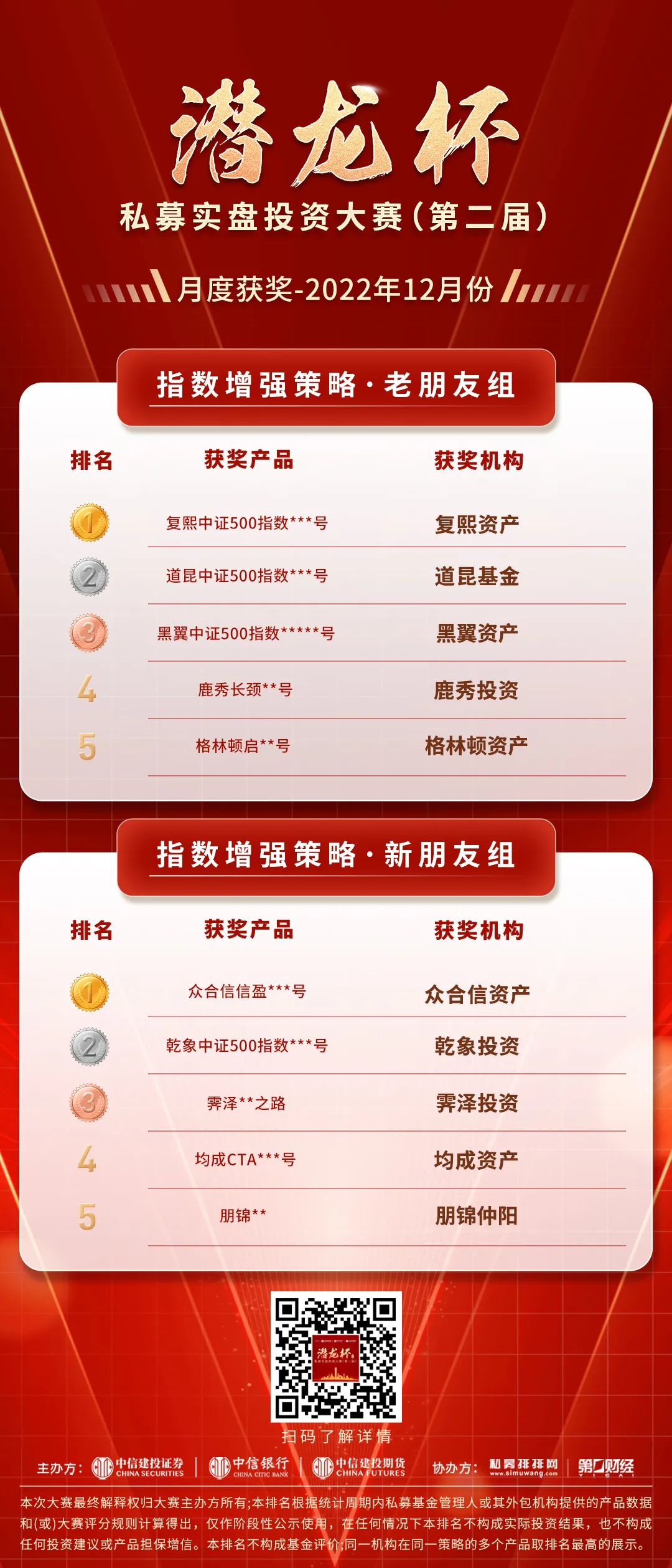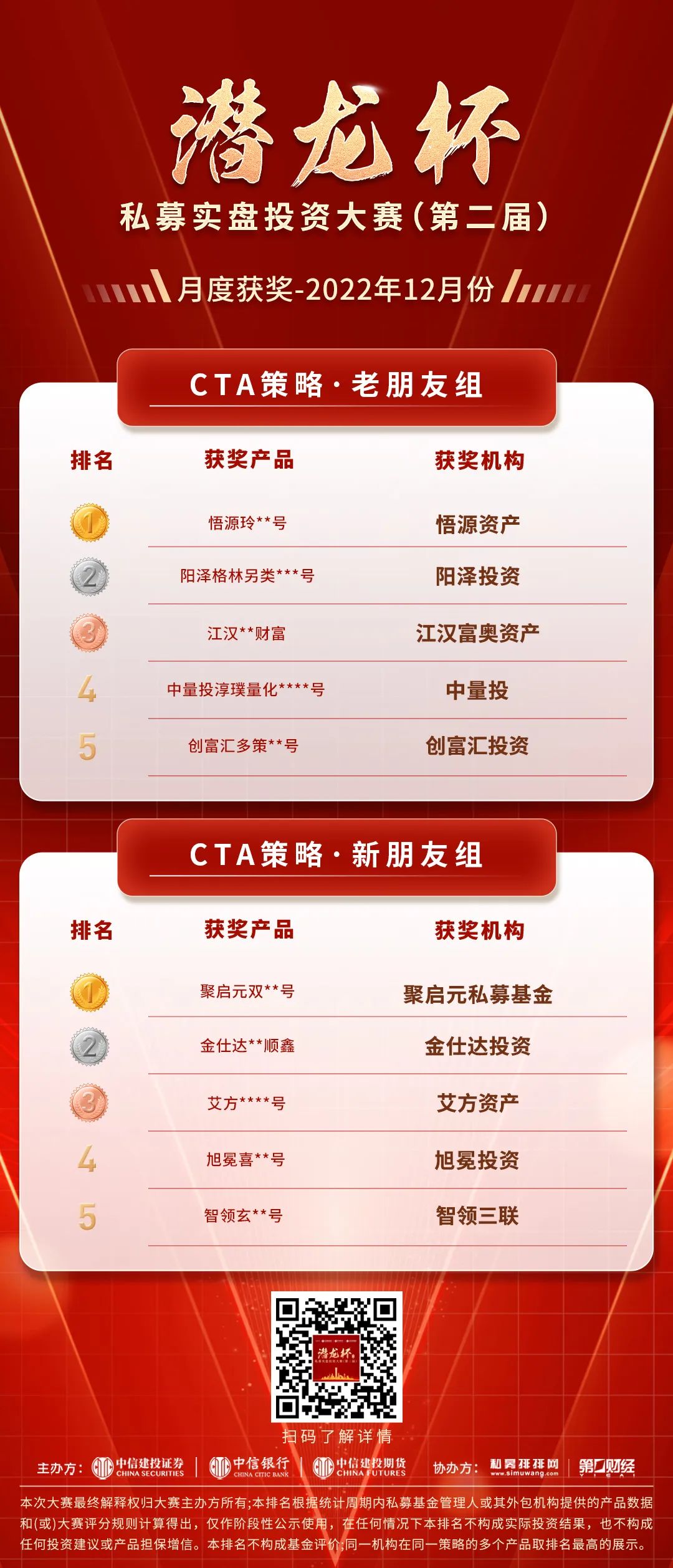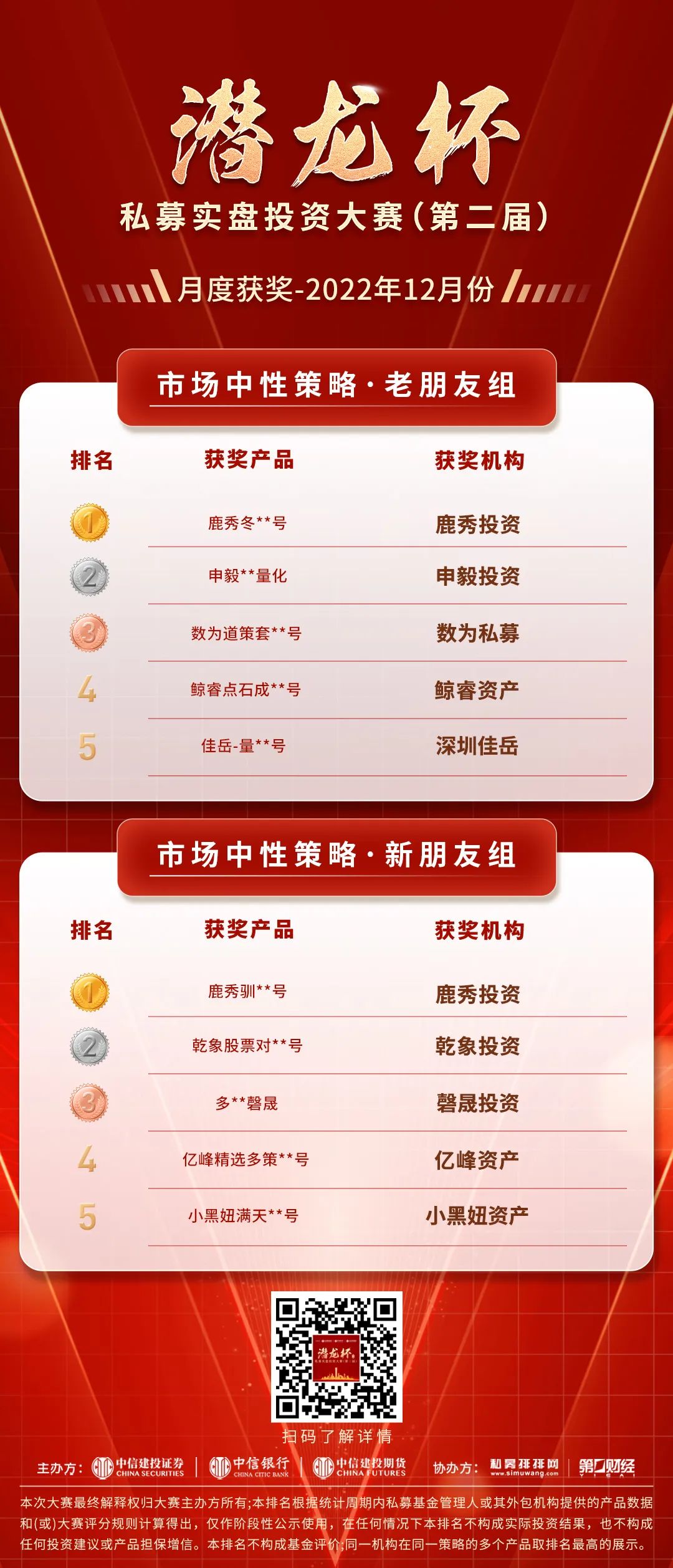 在平淡的市场行情下,由中信建投证券携手中信银行、中信建投期货举办的第二届“潜龙杯”私募实盘投资大赛仍上演了一出精彩较量,多家私募管理人凭借优异业绩脱颖而出并登上12月度榜单。