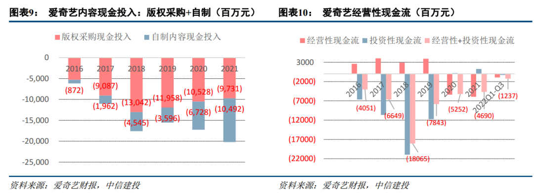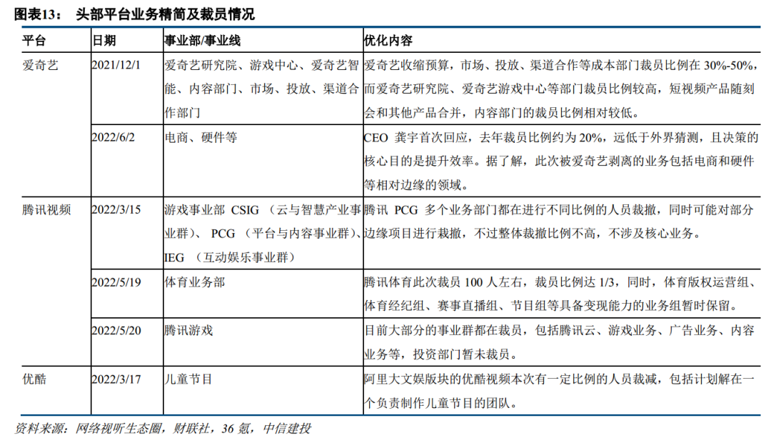 2)从投入角度看,“烧钱”不可持续。2022年以前,除芒果外,爱奇艺、腾讯视频、优酷均处于亏损状态,亏损的根本原因在于高昂的内容成本无法下降,爱奇艺2021年内容成本现金投入近200亿元,爱优腾三家近十年共计投入超过1000亿元人民币,唯一盈利的芒果则是受益于背靠湖南广电,拥有相对低廉的内容成本。而随着2021-2022年在监管、疫情、经济的多方因素下,行业大环境遇冷,资本市场对于长视频平台的亏损容忍度下降,市场亟待看到的是平台的盈利。此外,融资环境变差,在连年亏损下,各平台的现金流也出现一定压力,综合以上几点原因,降本增效是必由之路,各个平台都选择转向聚焦主业,实现盈利。