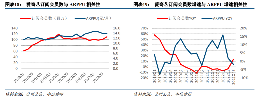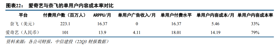 2022年是长视频行业具有重大意义的一年,爱奇艺、腾讯均实现了首次盈利,优酷也连续6个季度实现亏损收窄。头部平台或盈利或减亏意味着,经过一段时间策略调整,中国长视频行业正在进入更加健康和理性的发展新周期。我们以爱奇艺为例进行分析,发现其盈利的主因是毛利率的明显改善,而毛利率的改善更多靠内容成本的缩减,而后期UE如何改善,收入和成本如何考量,这是一个需要探究的核心问题。影响长视频平台的核心订阅商业模式无非三个指标:内容成本、付费用户规模、单用户付费水平。而这三个核心因素又存在一定的制约关系。通过中美对比分析,我们认为由于国内演员片酬较高及中美影视产业链差异的影响,国内影视上游的内容制作成本相比终端需求的购买力仍然太高,因此在短期内,在保证内容质量的情况下,成本端下降难度较大,盈利更多要关注单用户付费水平提升。