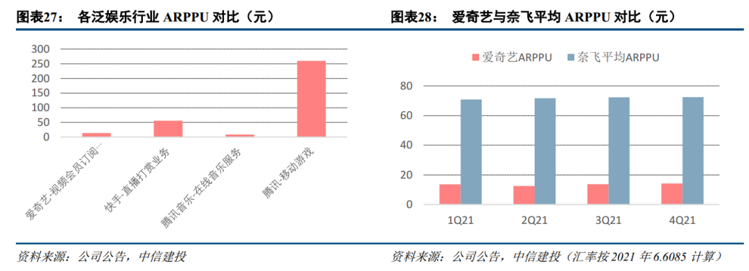 通过对各个平台提价后会员数量变化的分析,我们发现会员价格提升对会员规模影响比较有限,现阶段用户对价格的敏感度较低。究其原因,我们认为,首先,由于国内长视频平台消费横向低于其他泛娱乐平台,纵向低于海外平台奈飞,因而仍然具有提价逻辑,用户对提价相对不敏感;其次,平台深度绑定付费用户,付费消费习惯逐渐养成,会员使用粘性高于普通用户;第三,平台维持头部且优质内容的供给,持续打造差异化。