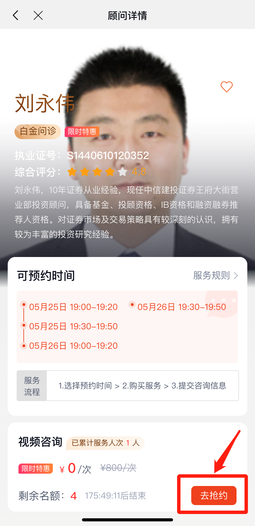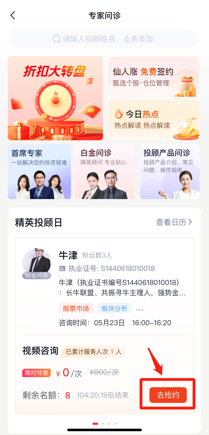 预约路径:蜻蜓点金APP-在线顾问-我的-视频咨询,交易日9:00-16:00可约