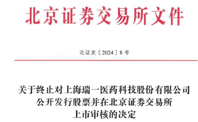 北交所网站日前公布关于终止对上海瑞一医药科技股份有限公司(简称“瑞一科技”)公开发行股票并在北京证券交易所上市审核的决定。