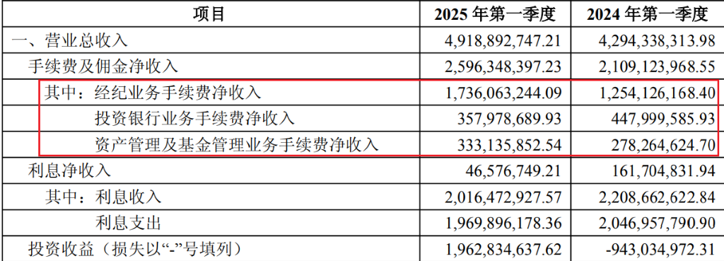 相比之下,经纪业务带来的收入成为重要的支撑点。投资收益“由负转正”