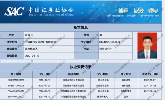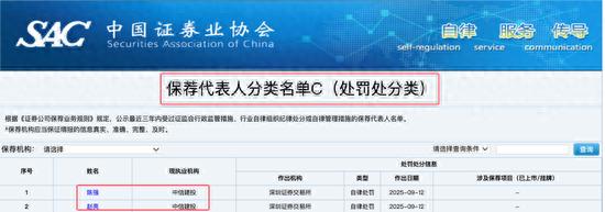 中信建投保荐代表陈强赵亮被列为 C 类违规失信名单,二人是国遥股份IPO保荐代表