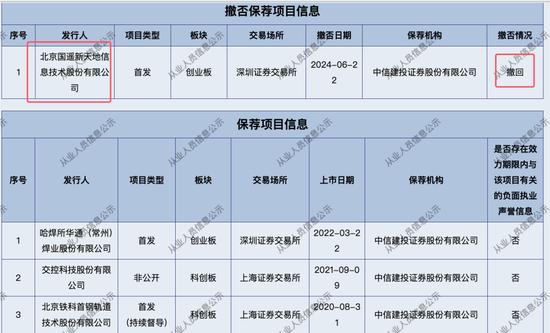 中信建投二保荐代表陈强赵亮被列为 C 类违规失信名单,二人是国遥股份IPO保荐代表(已撤回)