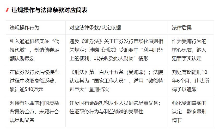 为完成发行,房蓓蓓协助引入上海守朴资产管理有限公司作为通道机构,通过“代投代缴”模式承接剩余11.5亿元额度,本质是制造足额认购的虚假表象。债券挂牌后,她又牵头联络资金方寻找接盘资金,在此过程中与资金中介形成利益关联。据悉,其最早对接的福建资金方背景复杂,曾因绑架获刑12年,该资金方撮合7亿元资金后,提出在票面利率外额外收取年化4%的返费。交易完成后,逾千万利差按“4:3:3”比例在资金方、房蓓蓓及中间人之间分配,房蓓蓓分得440万元;2019年底,她再撮合1亿多元资金对接,又收取约100万元返费,累计受贿超540万元。