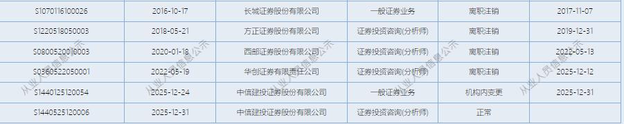 2、韩宇,12月19日从方正证券离职,12月29日加入中信建投,12月31日变更为分析师