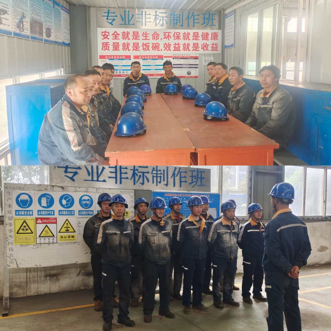 贵州顺安机电专业非标制作班共计11人,其中班长(钣金工、兼安全管理员)1人、副班长(焊工)1人,其他焊工2人、钣金工4人、辅助工3人。该班组自成立以来,始终将安全、环保、质量、效益四大要素理论与实际相结合积极推进各项工作,坚决贯彻公司“安全就是生命、环保就是健康、质量就是饭碗、效益就是收益”的理念。在公司正确领导、部门坚强监管、班组自觉执行下,通过班长安排与回头看、员工自觉落实与提升等形式,把责任细化到每个班组成员,立足岗位、严细管理、务实创新,坚持从我做起、从细节入手,良好完成了公司阳极组装及气垫式输送机的成套专业设备制作任务。自2020年3月成立至今,无安全、环保、质量事件事故的发生。