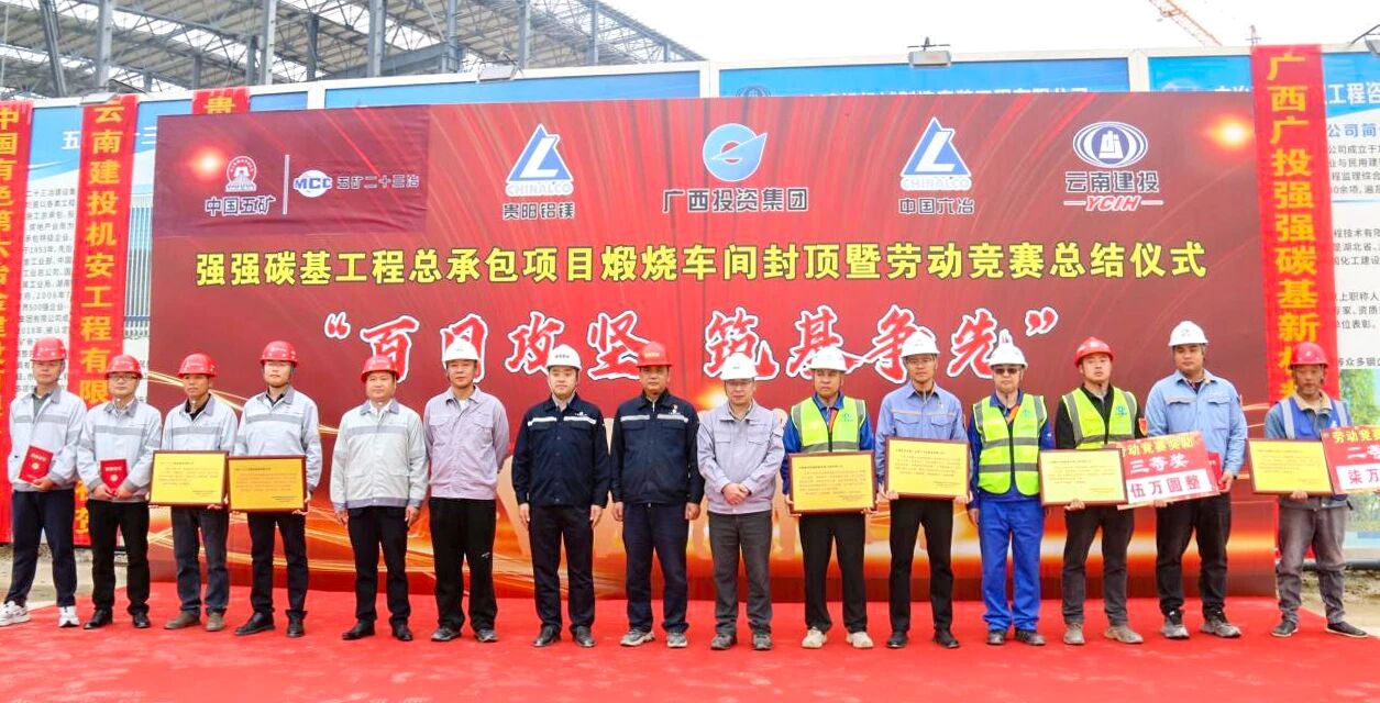 2025年12月29日上午,中铝国际强强碳基工程总承包项目迎来重大里程碑——石油焦煅烧车间顺利封顶,标志着项目本年度三大主厂房(焙烧车间、中碎高楼部、煅烧车间)封顶目标全部完成。