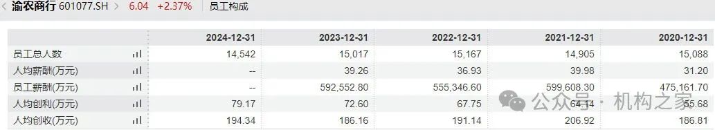 营业收入更多的是“面子”,而利润则是“里子”。渝农商行近5年来,人均创利水平从低到高、逐年增长的势头较为明显。在2020年该项指标仅为55.68万元,之后历年则依次为64.14万元、67.75万元和72.60万元;而最新的2024年数据又再次提升为79.17万元。
