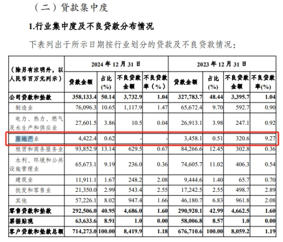 从行业分布来看,房地产行业的持续调整对渝农商行的资产质量产生了一定影响。年报显示,截至去年末,渝农商行房地产业不良贷款占比继续上升至0.62%,显然,房地产行业的低迷会增加银行相关贷款的违约风险。